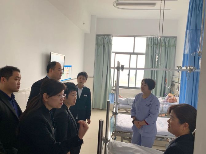 合肥京东方医院一行人对项目部小组式整理护理服务病房进行实地参观,详细了解泰心康护小组式护理特色、工作流程、医护辅三位一体、监察管理等方面。对泰心康护新型专业性服务理念和小组式护理服务带来精准与便捷给予高度评价。