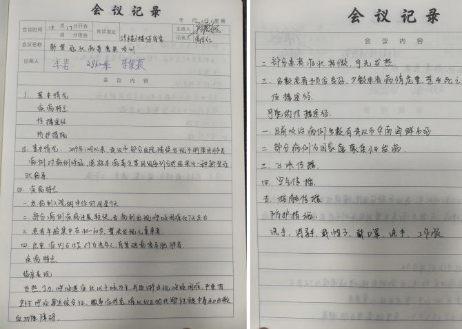 下午3点17分,项目经理修殿超为照护疑似新型病毒患者工作的三名护理员进行紧急岗前培训,重点强调注意做好个人防护和个人卫生问题!