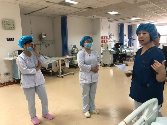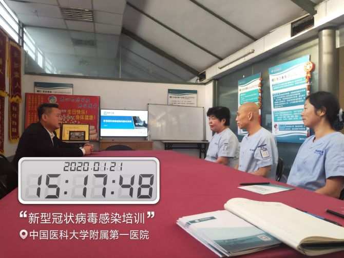 沈阳医大一院项目护理员于1月21日晚五点正式接岗,照顾疑似新型病毒患者的生活护理分两组进行。在医生和护士指导下整理床单位、协助患者进食水、病房消毒等,他们是一组:刘红军、李岩,二组:潘莲萍、刘桂荣、武桂芬、李俊荣,凭借过硬专业技能和不怕艰险挺身而出的精神,得到科室医务人员表扬。