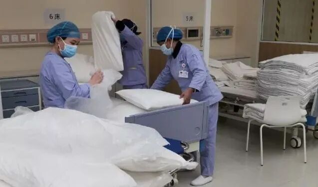 武汉新冠肺炎疫情爆发,武汉亚心医院护理员为医护人员准备临时宿舍