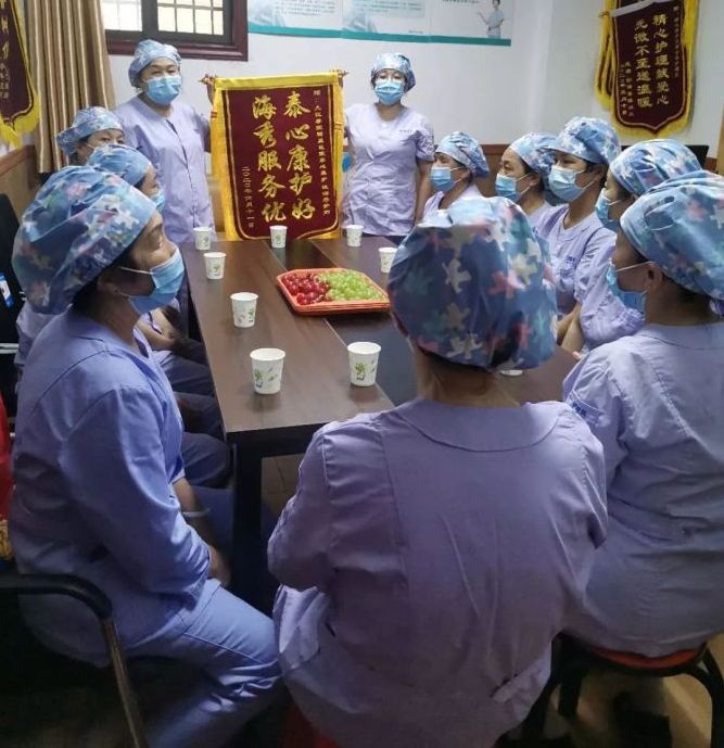 二、九江学院附属医院项目部对优秀护理员汪海秀进行表彰,将患者家属专门邮寄的一面锦旗送给汪海秀大姐;