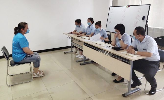 为促进让每一位学员稳岗就业,7月3日蓝领学校邀请了山西省人民医院、山西医科大学第二医院、山西白求恩医院三家三甲医院的护理陪护负责人进行面试。当天“古交康护”劳务品牌24名学员全部顺利通过面试考核。