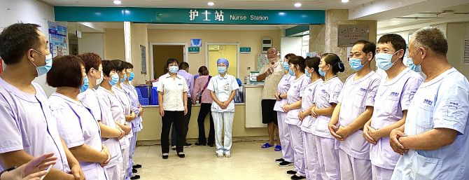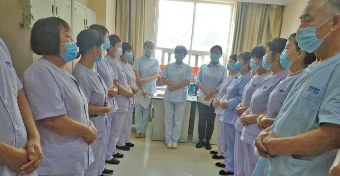 2020年7月29日16:00–17:00,项目主管薛建然携项目管理人员和在岗护理员参加脊椎脊柱楼二楼关于科室如何配合护士站工作与脊柱、颈椎术前及术后方面的培训。