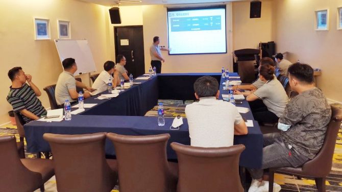 9月1日,中国蓝领大同市母婴项目团队8月份运营分析会现场