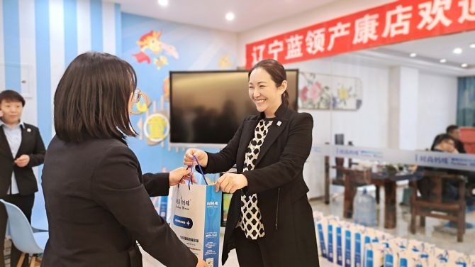 ▲辽宁产康基培训学校负责人曲嘉宏为学员送上暖心伴手礼
