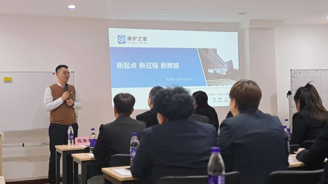 康护之家东北大区、信息管理部、综合管理部总监陈海涛分享开营第一课《新起点 新征程 新跨越》。