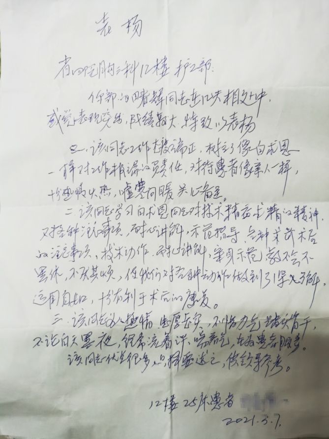 自2021年2月20日泰心康护河北省公司正式入驻河北医科大学第四医院胸三科、胸五科以来,短短20几天,河北省四院项目部就收到了两面锦旗,三封表扬信,获得了科室医务人员、病人及家属的高度认可↓↓