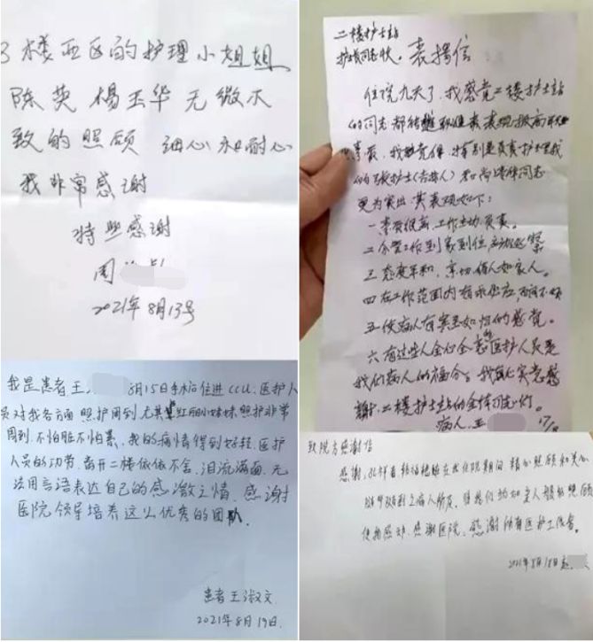 这些感谢信,字里行间都表达了着患者对护理员精心服务以及细致工作的衷心感谢。