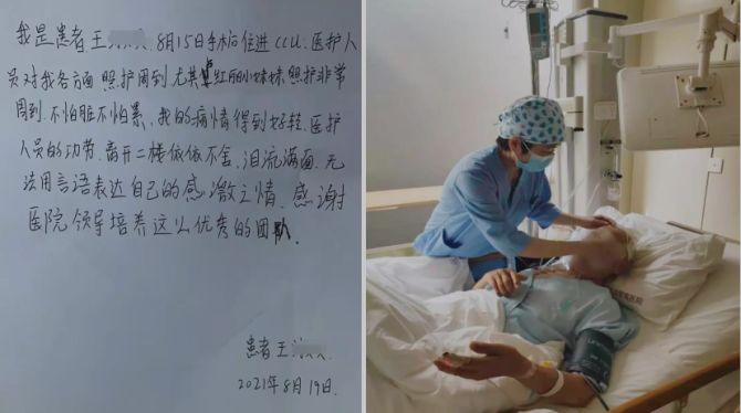 CCU作为重症监护室,其内的患者更是饱受病痛折磨,护理员尚清华和护理员卢红丽周到体贴的服务,让患者留下了感动的热泪。