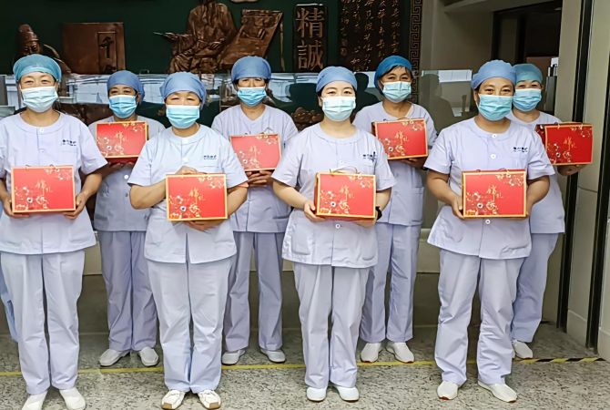潍坊市人民医院项目全体管理人员为在一线艰苦奋斗的家人们准备了中秋佳品;感谢全体员工为公司的发展而不辞辛劳的坚守工作岗位。