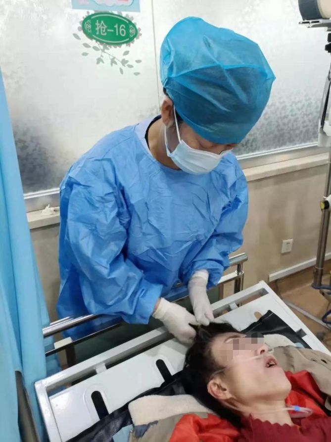 刚被送到医院时,这位“无家的患者”有生命危险,直接送到了EICU,插喉管、尿、胃管,打点滴,在重症监护室,我们除了要提供专业的护理服务外,还要替家属照顾病人的生活。冯姐为她脱下脏衣服的时候,那种尿碱熏的刺眼睛、流眼泪。冯姐仍旧耐心的为她擦身、梳头,然后换上好心人送的外衣裤。
