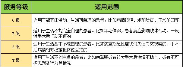康主任为大家列举了,泰心康护公司创新服务模式,根据患者自理程度划分为四个等级,分别为T级、A级、B级和C级。又根据科室需求程度,在不同的科室,推行不同模式的服务:一对一专属式服务模式和小组式整体服务模式,以达到针对性服务,满足科室和患者的多方面需求,同时也为患者减轻经济负担。