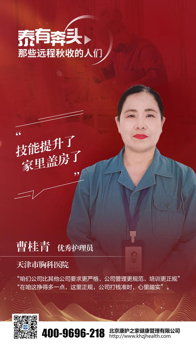泰心康护天津市胸科医院项目经理彭爱丽这样评价曹桂青——“曹姐工作非常认真,CCU的工作非常繁重,有的病人需要24小时监测,我们的主管有时会在半夜替上曹姐几小时,让她休息一下”。“曹姐对患者的态度像家人一样温暖,我们遇到过送锦旗的、送感谢信的,还有护理好出院的时候家属鞠躬感谢的”。“这几年因为疫情,科室管理的也严格,曹姐已经两三年没回家过年了,越是节假日,越是繁忙,曹姐都舍小家为大家,奋战在一线”。