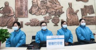 河北省中医院总导诊台 导医在耐心解答家属的提问