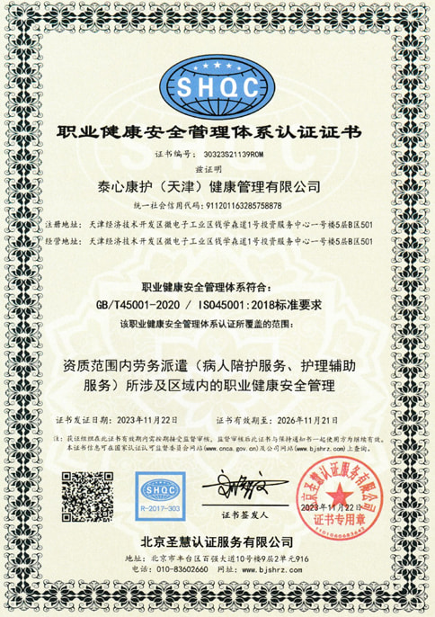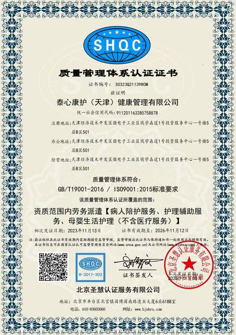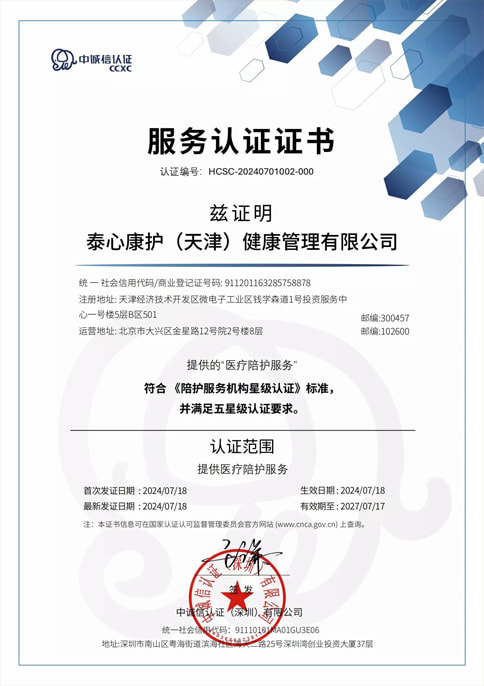 获得陪护服务机构星级认证五星证书