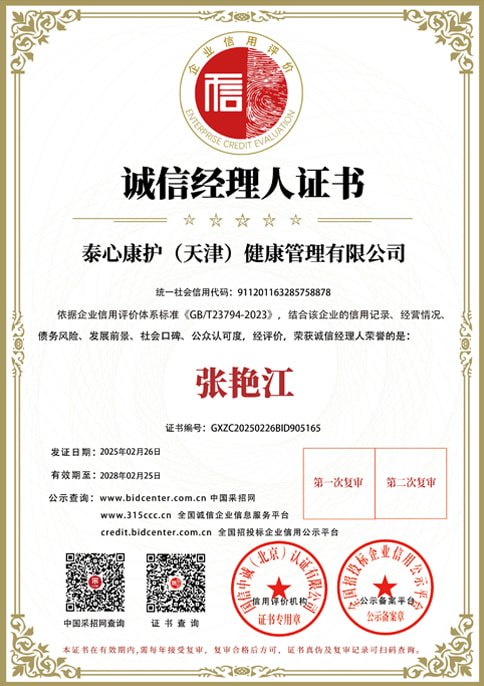 荣获诚信经理人证书