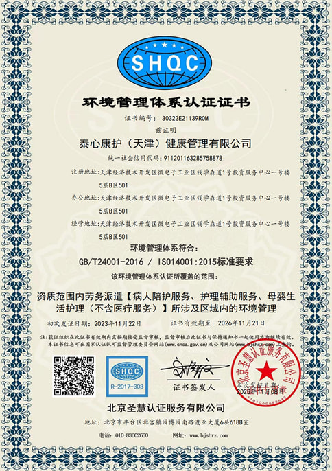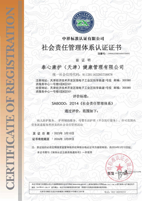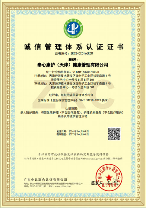 获得陪护服务机构星级认证五星证书